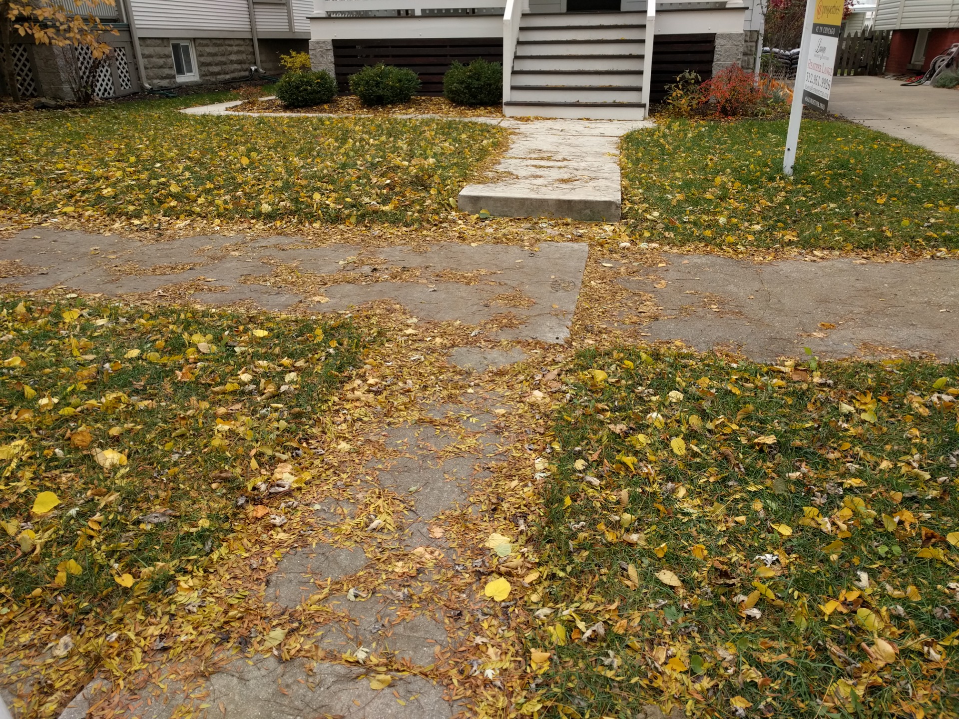 spray weed killer between sidewalks, add a blend for weed killer and fertilizer on the lawns.