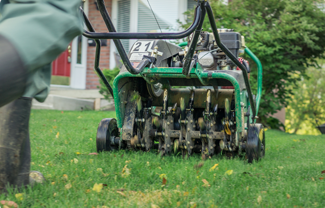 Removing small plugs of soil from the lawn. Alleviates soil compaction and enhances the overall health of your turf.